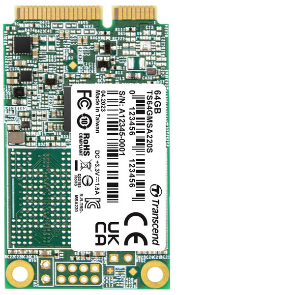 Transcend TS64GMSA220S is a 220S series mSATA solid-state drive designed to provide efficient, high-speed data storage solutions within a compact form factor. With a storage capacity of 64 GB and leveraging the SATA 6 Gbps interface, this SSD offers both reliability and performance, making it ideal for enhancing the storage capabilities of ultrabooks, laptops, and small-form-factor devices. Utilising non-volatile NAND flash memory, the TS64GMSA220S supports rapid data transfer rates and reduced power consumption, which are crucial in mobile computing applications. Commonly used in embedded systems and industrial PCs, this drive is optimised for environments that require compact, durable storage solutions without the need for moving parts. Through its mSATA interface, this SSD facilitates seamless integration into systems requiring lightweight and energy-efficient storage devices.