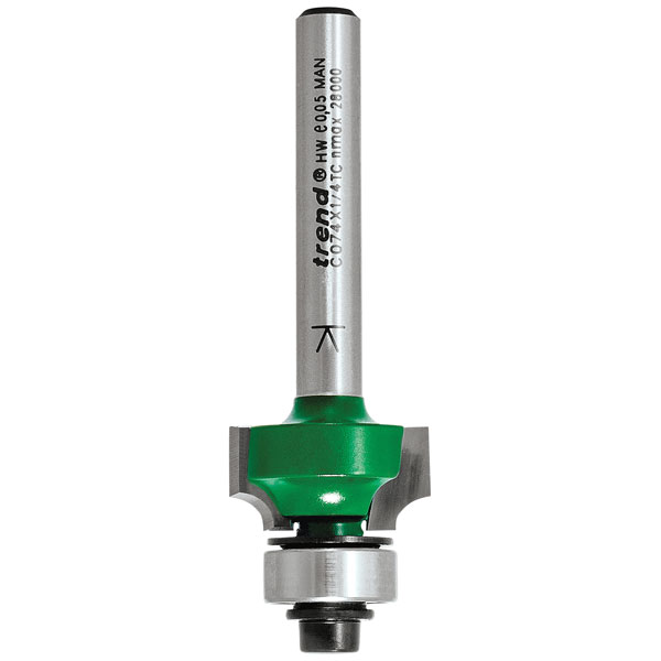 Trend C074 x 1/4 TC Round Over Two Flute Cutter. 1/8in imperial radius for matched replication. Leaves perfect fine round over detail for a contemporary eased edge profile on straight and curved edges.