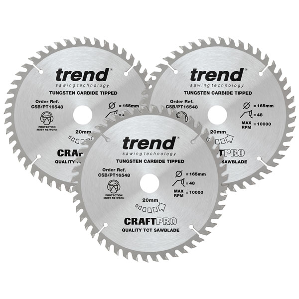 1 x Pack of 3 Trend CraftPro CSB/PT16548 Panel Trim Saw Blades 165 x 20mm x 48T