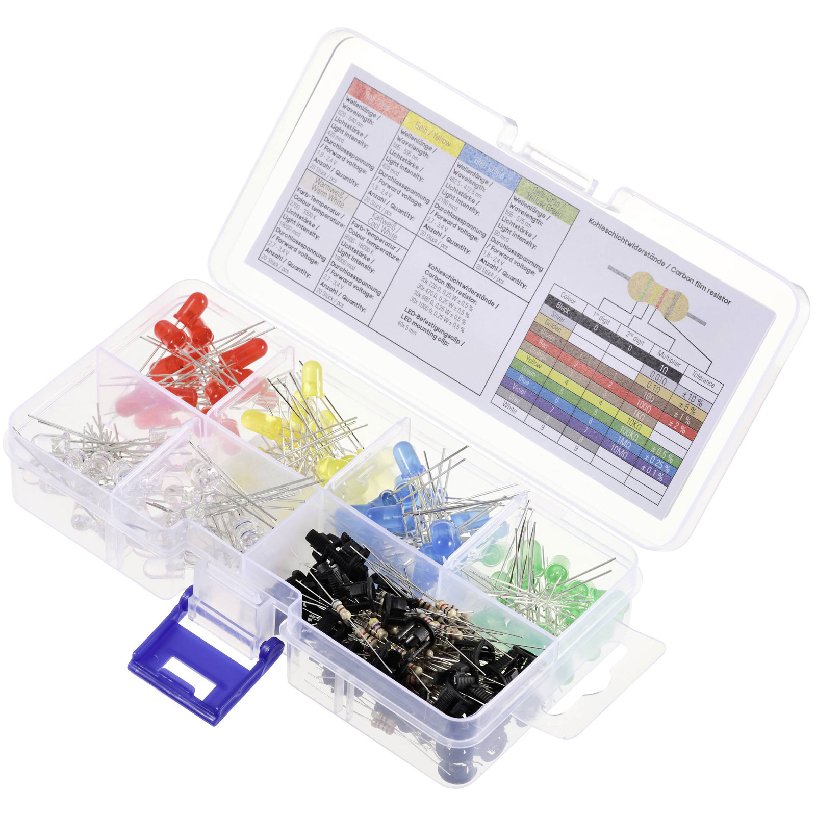 TruComponents TC-11441768 is a versatile set of LED strip lights, featuring a comprehensive range of colours including red, yellow, blue, yellow-green, warm white, and cold white. These circular 5 mm LED lights provide varying luminous intensities, such as 90 mcd for red and up to 19000 mcd for yellow-green, offering engineers a wide selection of lighting options for diverse applications. With a consistent current requirement of 20 mA, the operational voltage ranges are 1.8 V for red, 2.4 V for yellow, 2.7 V for blue, and 3.4 V for yellow-green. The 30-degree beam angle and its reliable performance make this component suitable for intricate electronic displays, status indicators, or ambient lighting systems where precise light direction and intensity are crucial. The robust design supports extended use in both residential and commercial electronic applications, addressing the demands for reliable and efficient lighting solutions in a variety of settings.
