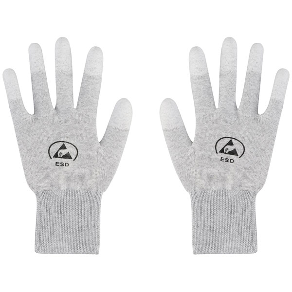 TRU COMPONENTS TC-12539848 ESD gloves are designed for efficient electrostatic discharge protection in environments that necessitate stringent ESD safety standards. These gloves are crafted in a light grey hue and are available in size L, providing a comfortable fit with excellent dexterity for handling sensitive electronic components. The gloves feature advanced ESD shielding technology, essential for preventing unwanted static build-up during the assembly, inspection, and repair of electronic devices. They are an indispensable asset in an EPA (Electrostatic Protected Area), ensuring that operators are adequately shielded, grounded, and compliant with relevant ESD safety protocols. These gloves are frequently utilised in semiconductor manufacturing, cleanroom environments, and other electronic production facilities where maintaining static-free conditions is critical.