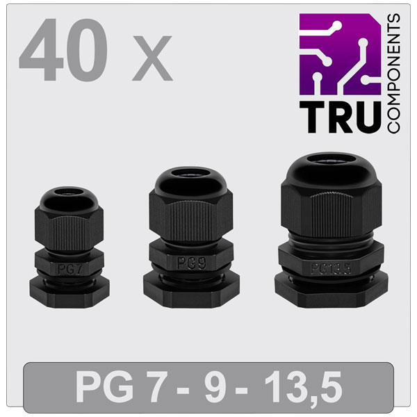TRU COMPONENTS TC-13448352 Cable gland Polyamide Black 40 pcs
