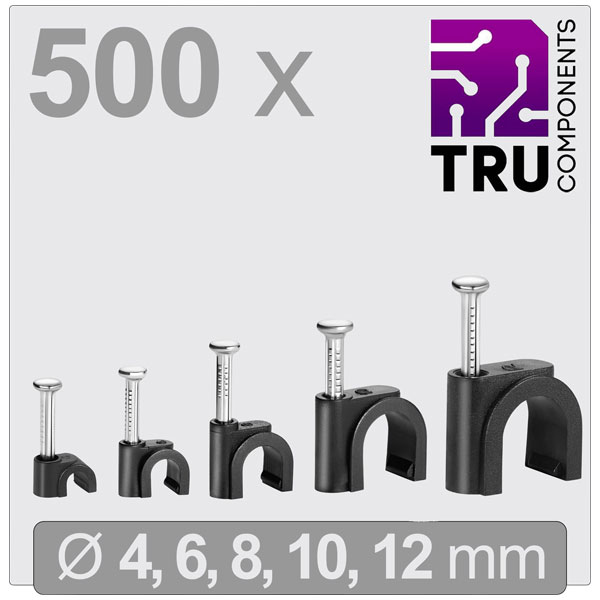 TRU COMPONENTS TC-13448480 Cable clips black 2 to 12 mm Dia range 500 pcs