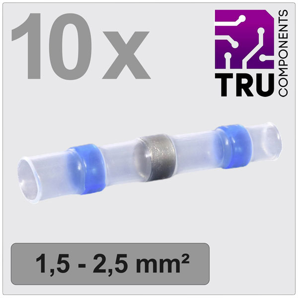 TRU COMPONENTS presents the TC-13448516, a set of butt connectors designed for secure and reliable electrical connections. These components are specifically engineered for wire sizes ranging from 1.5 mm² to 2.5 mm², providing robust insulation with their blue coating. Each connector includes an integrated heatshrink sleeve, enhancing mechanical protection and securing the connection against environmental factors. Ideal for a variety of electrical applications, these butt connectors are commonly utilised in automotive, aerospace, and industrial contexts where permanent, insulated joints are essential. With precise manufacturing standards, the TC-13448516 butt connectors ensure consistent electrical performance and simplify installation across diverse engineering projects.