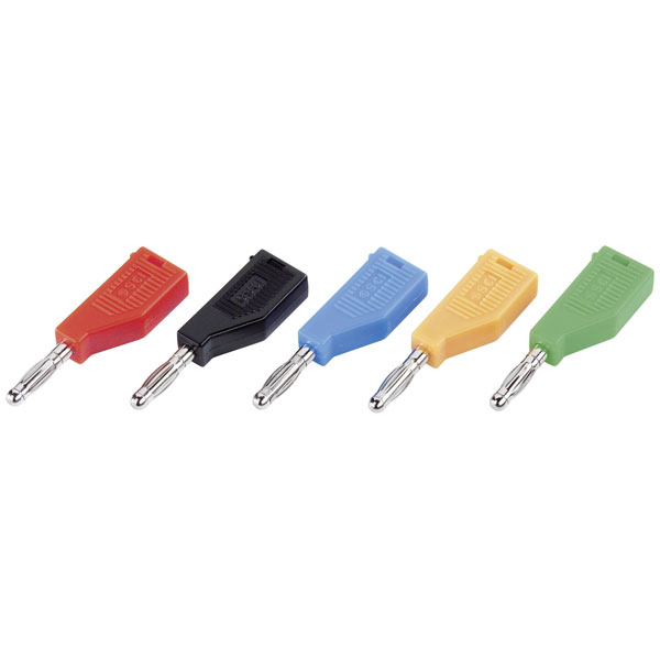 Screw connection for test leads up to 2.5mm². Silver-plated MS connector. Longituinal socket. PVC sleeve grip.