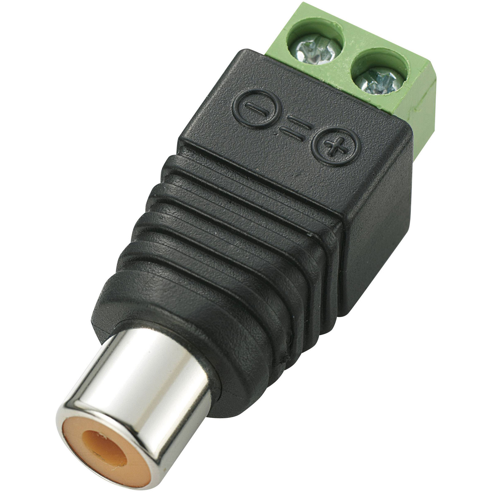 TruComponents 202626 RCA Connector Socket. This high-quality, straight RCA socket features two reliable pins and a sleek black finish, ensuring a secure and stylish connection for all your devices Rca plug connector with screw connection block.