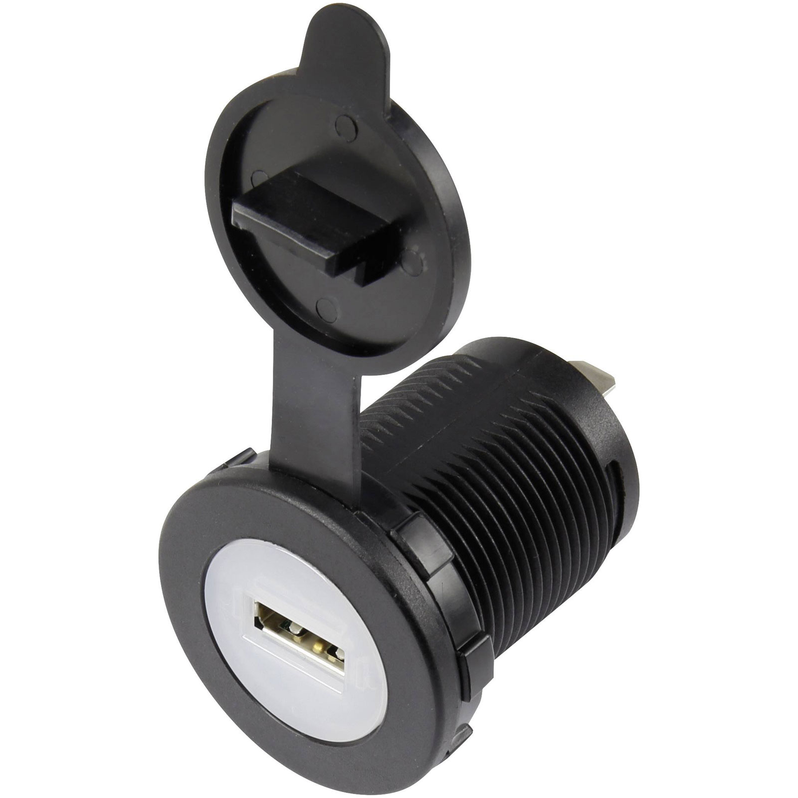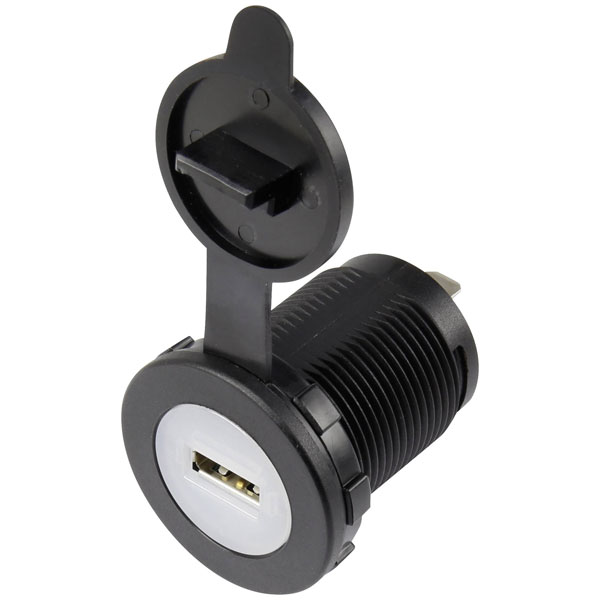 TruComponents 240872 USB skt w/dust cap,vertical 1-way, Ø36.8mm,blue lighting