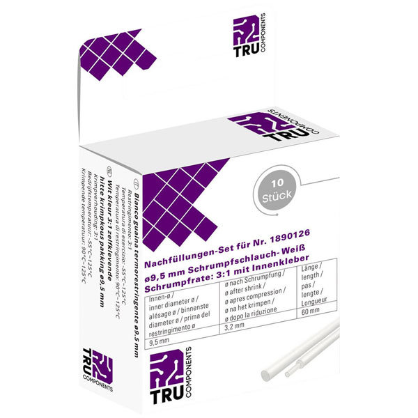 TruComponents 30406 Heatshrink adhesive Wh 9.50mm 3.10mm 2:1 10 pc(s)