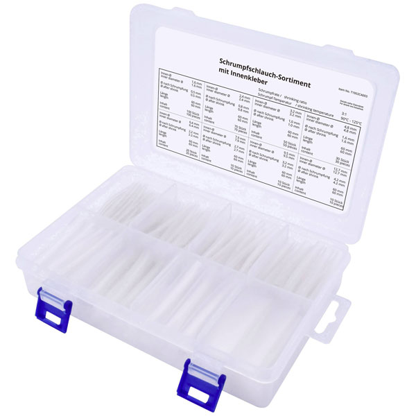 The TruComponents T1902CA003 Heatshrink set in clear offers a reliable solution for electrical insulation needs, featuring a shrinkage ratio of 3:1. This comprehensive set includes 300 pieces, ensuring ample supply for various applications, such as wire bundling and protection against abrasion and environmental factors. Ideal for both professional and DIY projects, this heatshrink set combines durability and transparency, allowing for easy inspection and maintenance of underlying components.