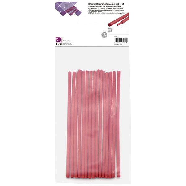 TruComponents 30418 Heatshrink set Red 3mm 1mm Shrinkage:3:1 15pcs