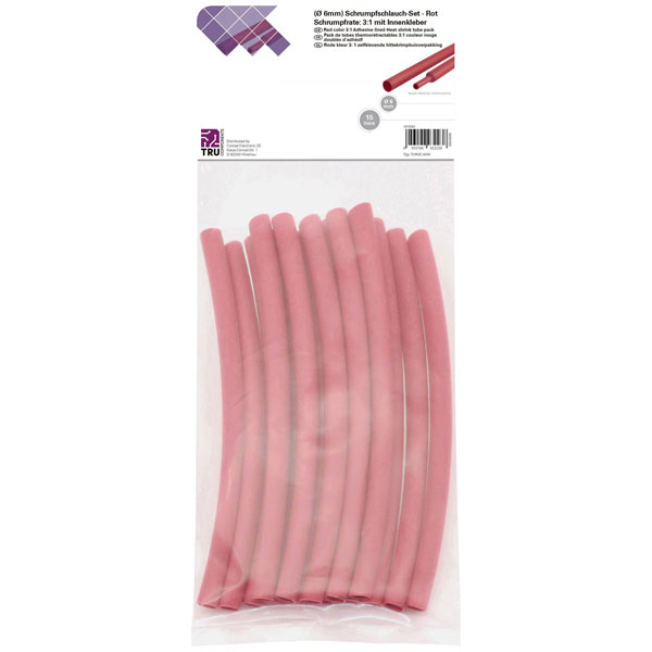 TruComponents 30427 Heatshrink set Red 6mm 2mm Shrinkage:3:1 15pcs