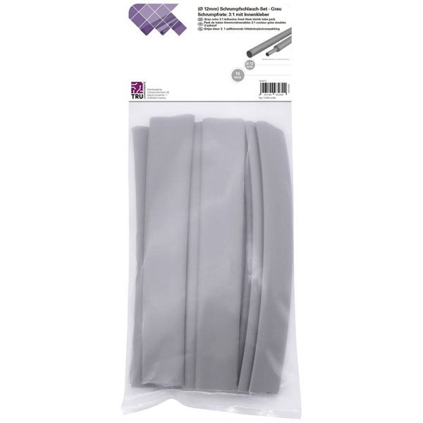 TruComponents 30432 Heatshrink set Grey 12mm 4mm Shrinkage:3:1 15pcs