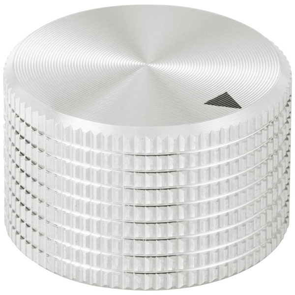 TruComponents 320016 Control Knob, designed for those who demand quality and functionality. Crafted from durable aluminum, this elegant silver knob (Ø 25mm x H 16mm) not only offers a sleek aesthetic to your devices but also ensures a firm grip and smooth operation