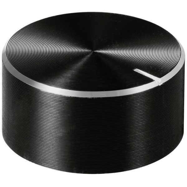 TruComponents 320021 Control Knob, an ideal combination of form and functionality. Crafted from durable aluminum and high-quality plastic, this sleek black control knob is designed for effortless installation and a comfortable grip