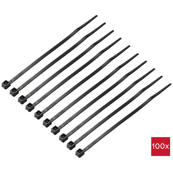 TruComponents 40504 Cable Ties. These versatile 100mm black cable ties are your go-to solution for tidying up wires and cables in any environment—be it home, office, or workshop.