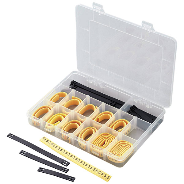 The TruComponents ECMKS-3 Pre-printed Cable Marker Set features black markers designed for easy identification of cables and wires. Suitable for cables with outer diameters ranging from 2mm to 5mm, these heat shrink markers display numbers 0-9 and letters L, N, R, S, T, along with symbols + and -, simplifying the cable organisation process. Ideal for industrial marking and cable processing applications, this set ensures efficient cable management in various applications, including electrical installations and machinery maintenance.