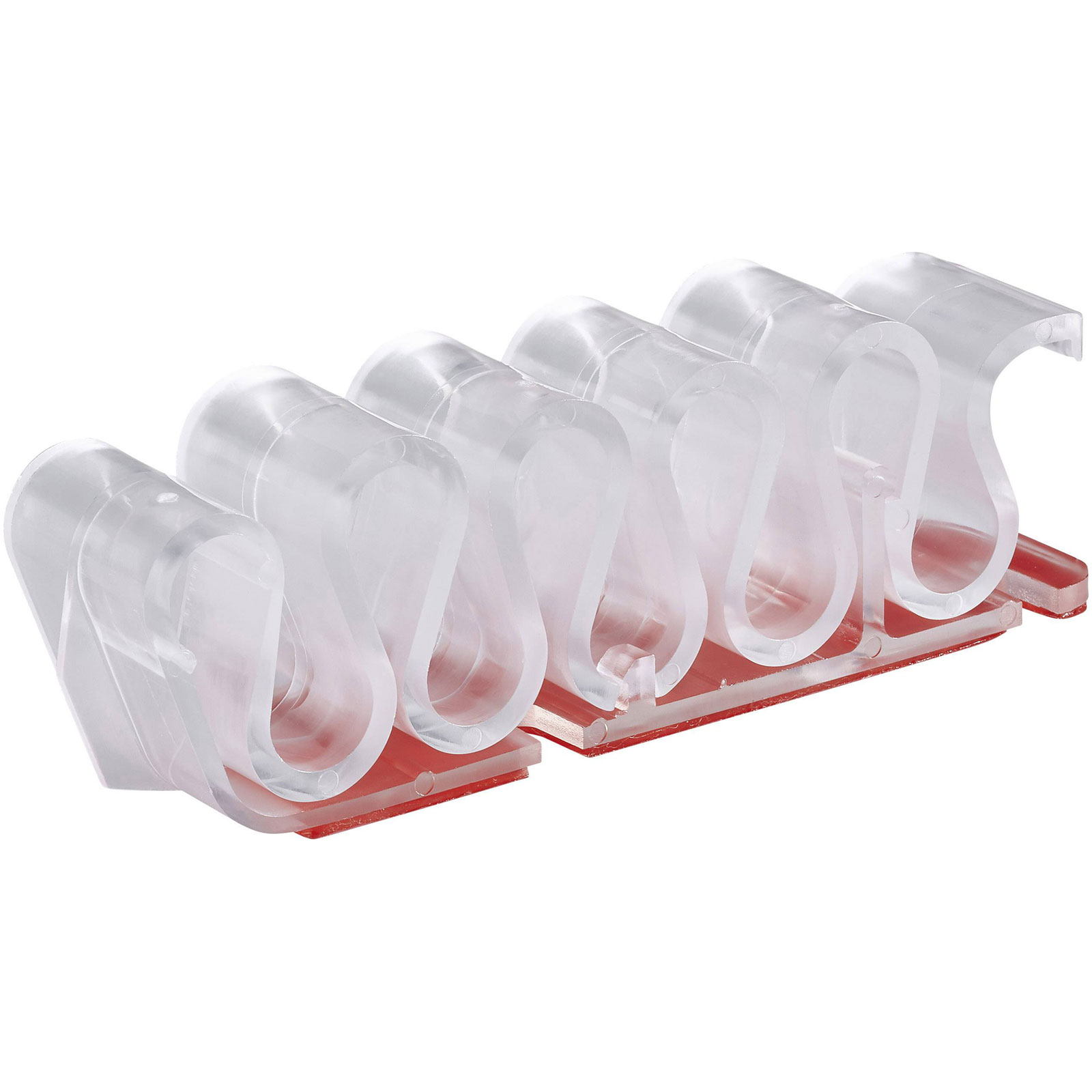 This TruComponents transparent, self-adhesive multi-cable clip bundles up to 9 cables/wires at the same time. Clip open, insert the cable and clip together until the locking snaps into place. Can be mounted with screws or using the attached adhesive tape.