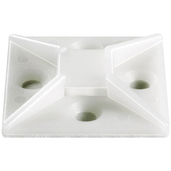 These 26.3 x 26.3mm self-adhesive base can be used to hold cable ties with which the items to be bundled are secured. The mounting base, can be threaded from all 4 sides. Maximum cable tie width is 8mm. Cable bundle diameter is 12.7mm (max.). The adhesive base is also equipped with mounting holes for screw mounting.