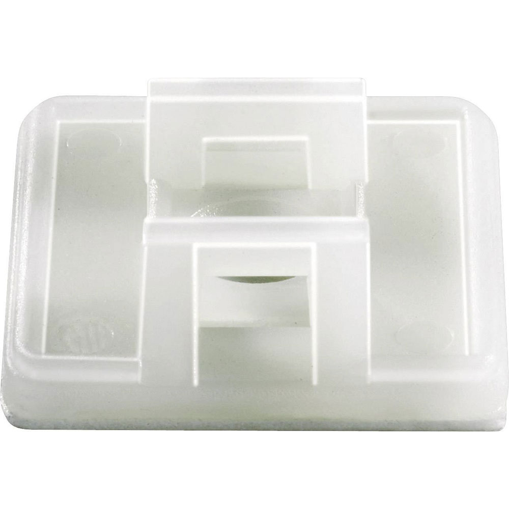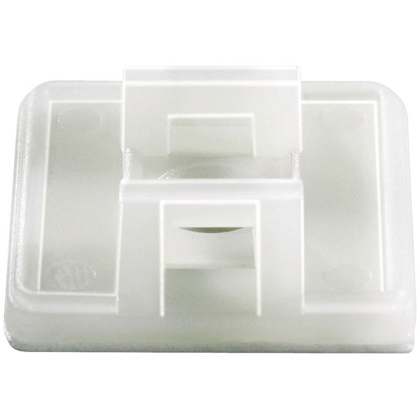 These 26.5 x 26.5mm self-adhesive base can be used to hold cable ties with which the items to be bundled are secured. Maximum cable tie width is 5.8mm. Cable bundle diameter is 19.4mm (max.). The adhesive base is also equipped with mounting holes for screw mounting.