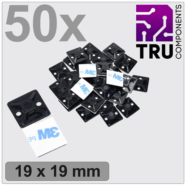TruComponents 41222 Cable mount Adhesive/Scr fixing 4x thread Blk 50pcs