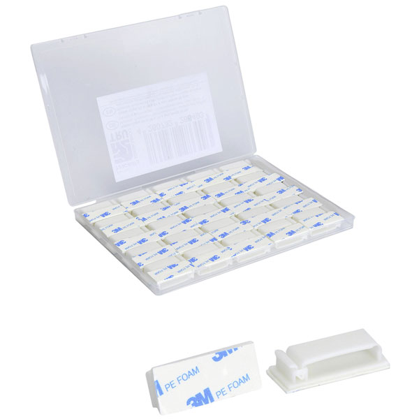 These self-adhesive cable fixing clips made of silicon material are Ideal for attaching cables and wires, flat cable and small hoses on firm and smooth surfaces like tables, metal or plastic surfaces and other suitable materials. The clip lock allows easy opening and closing without dismantling - and thus the problem-free replacement of the cables, wires or hoses underlying it. The 3M-quality adhesive surface guarantees a secure, strong and permanent connection to the table or other parts. The slot has a length of 3.2 cm and a height of approx. 6.5 mm (max. Cable diameter up to 7 mm). The gluing surface is 4.5 x 1.9 cm.
