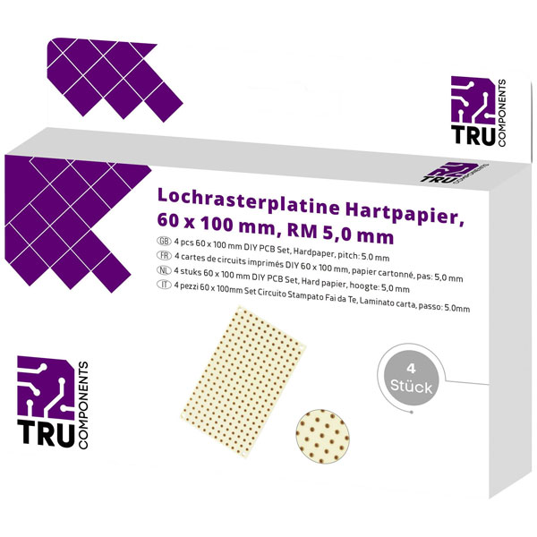 TruComponents 654996 Eurocard PCB Phenolic 100mmx60mm 35µm,Pitch:5 mm 4 pc(s)