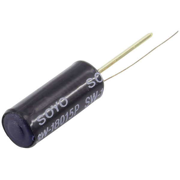 The Tru Components 656593 is a vibration sensor with a reading range of 360 degrees maximum, designed with solder pins for easy integration into electronic circuits.