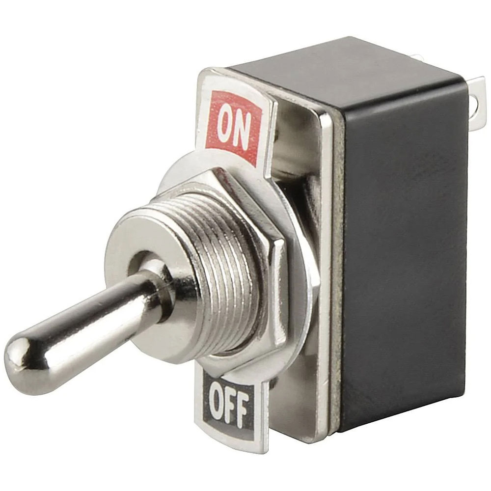 The TruComponents 751455 Toggle Switch is a high-quality, single-pole single-throw (SPST) switch designed for reliable performance in various electrical applications. This panel mount switch features an Off/On functionality, making it ideal for simple on/off control of electrical circuits.
