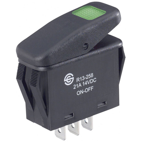 This single-pole, single-throw (SPST) switch features an illuminated design, providing clear status indication. Its quick-connect terminals ensure efficient and secure installation, reducing setup time and enhancing reliability.