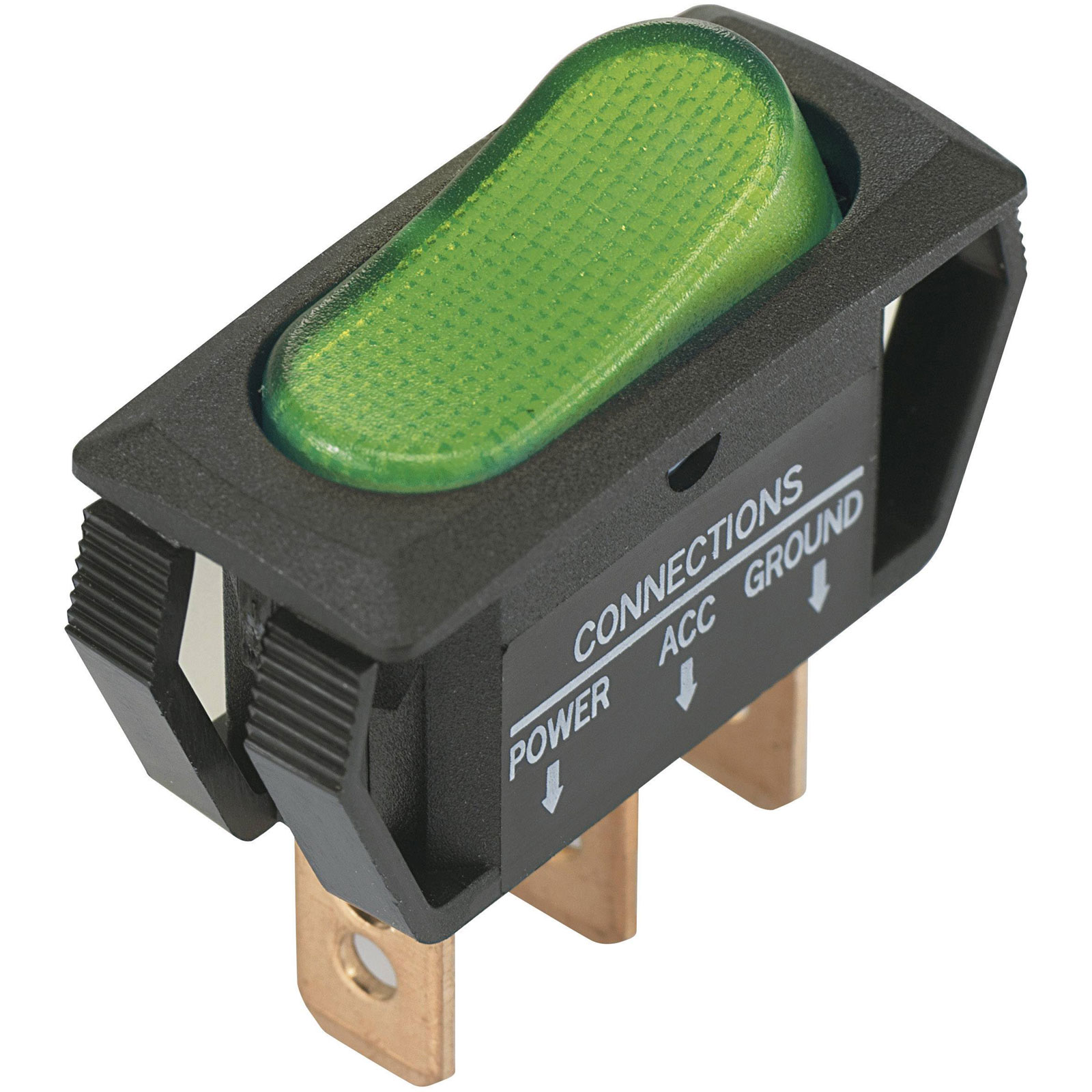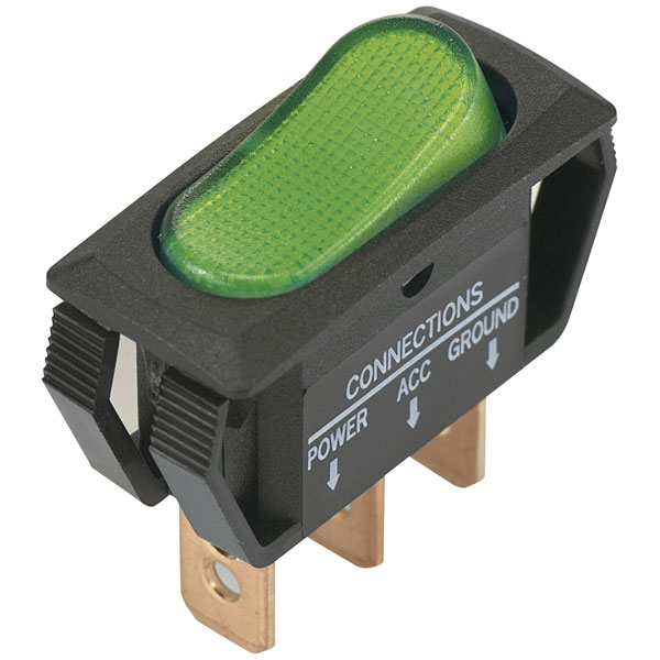 The switch includes a quick connect mechanism, ensuring easy and secure installation. Its illumination feature enhances visibility, providing a clear indication of the switch's status.