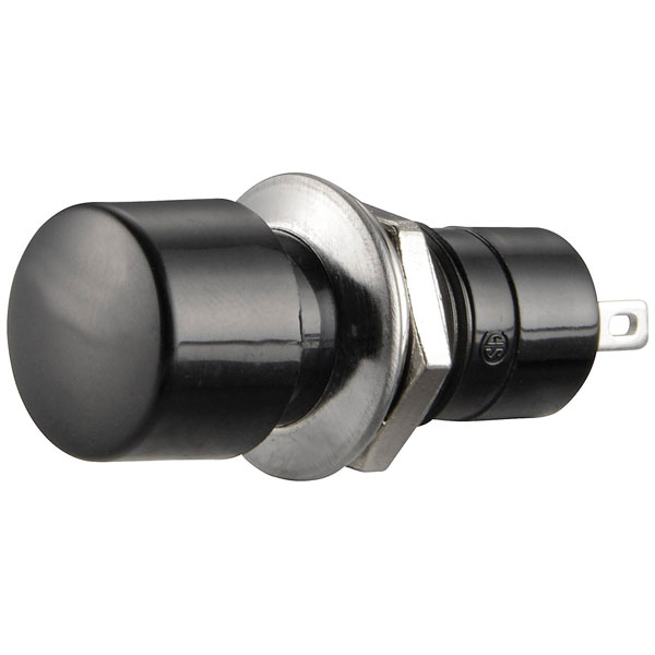 The TruComponents 78-1928 Pushbutton is a reliable and durable momentary switch, ideal for various electronic applications. Rated at 250V AC and 1.5A, this pushbutton features a protruding black button cap, and solder tags for easy installation. Its robust phenol construction ensures long-lasting performance, making it a perfect choice for control panels.