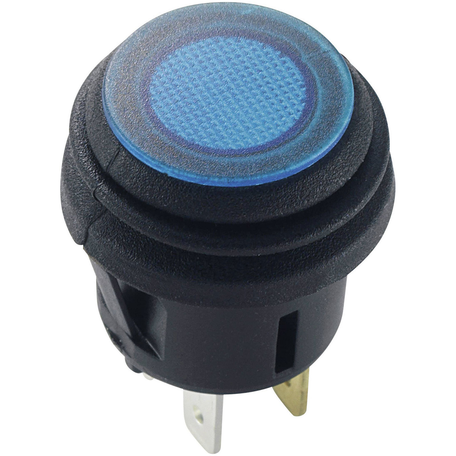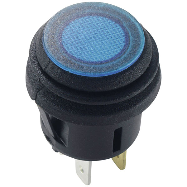 The TruComponents 78-1999 pushbutton is a blue illuminated panel mount switch with a single-pole single-throw (SPST) latching configuration for on/off functionality. It operates at a voltage of 14V DC with a current rating of 20A. This pushbutton is typically used in applications requiring reliable on/off control, such as in electronic devices and equipment panels.