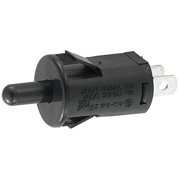 The TruComponents 78-2119 pushbutton is a black panel mount switch with a single pole, single throw (SPST-NO) configuration for momentary action. Rated for 250V AC and 10A, it is suitable for switching tasks, in which an open door is to be registered or as "Registration" for an Alarm system. Commonly used in control panels and equipment interfaces. Its rugged construction and reliable operation make it suitable for industrial and commercial applications.