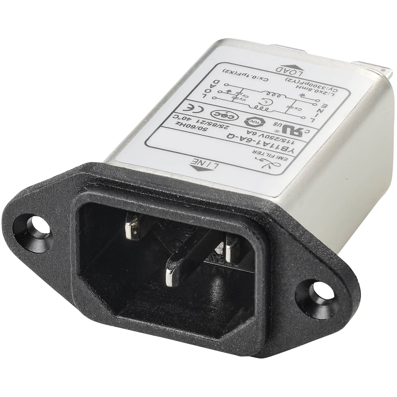 TRU COMPONENTS TC-10101460 Line filter IEC socket switch 2 fuses 250V 6A 0.8mH |