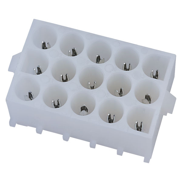 Power connector PCB pin header with 15 poles. This range of power coupling and power to board connectors are suitable for many industrial applications. They are robust and highly reliable and feature positive polarisation and positive locking. The contacts are completely enclosed in housings, have low mating force and are removable to maintain flexibility in the system.