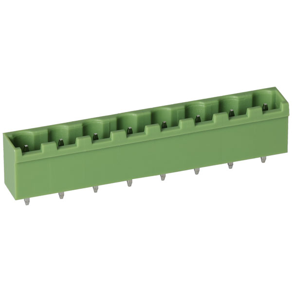 Top entry, closed ended, header connector with 8 poles, 7.62mm pitch.
