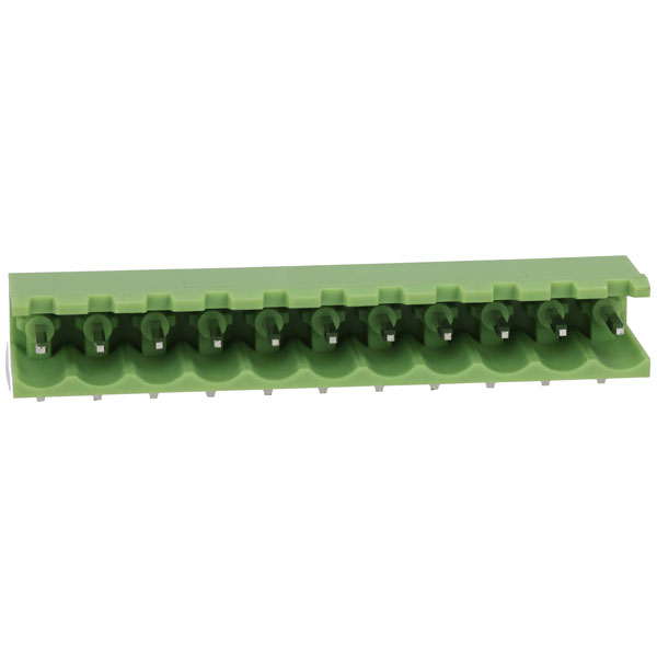 Side entry, open ended header with 11 poles, 5mm pitch, designed for use with pluggable rising clamp terminal blocks.