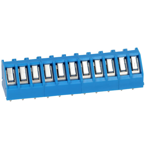 45 degree, low profile terminal block with 11 poles, 5mm pitch.