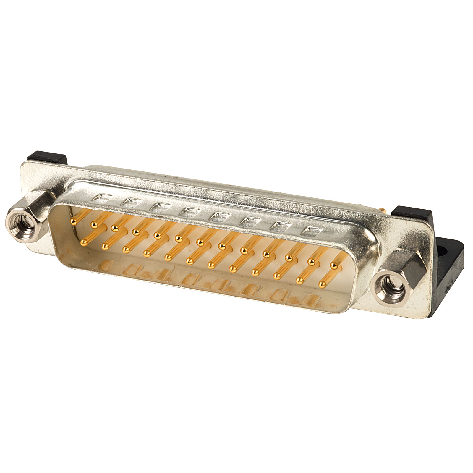Professional D plug with 25 ways, right angle orientation, 2.54mm pitch.