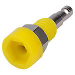 This yellow test socket has been designed to be panel mounted. It requires a cut-out of 5.2mm and a solder termination.