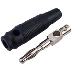 Build your own safety cable test leads with these high quality black 4mm plugs. They can accept up to 3.5mm diameter cable and can either be terminated with a screw or solder. The caged spring and the tapered sleeve provide protection against kinking and are ideal for easy self-assembly of the test lead.