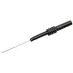 A black safety test clip that has a 4mm socket extension. Its long, sharp stainless steel tip and flexible spring within the silicone tube body mean that this clip is ideal for a wide range of test applications.