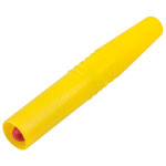 These yellow safety sheathed 4mm banana plugs have a straight body and a solder bucket termination with a rigid insulating sleeve and soft ends. These plugs allow for a quick and easy termination of a fully insulated banana plug to the insulated wire, and will mate with all standard 4mm shrouded banana jacks/sockets.