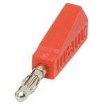 You can use these safety sheathed 4mm red stackable banana plugs to build your own safety cable test plugs. These 4mm test plugs have a solder termination with a rigid insulating sleeve.