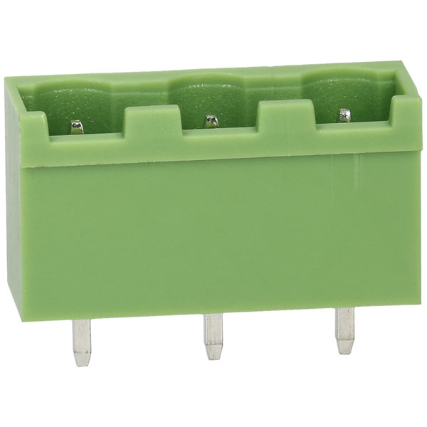 Top entry, closed ended header with 3 poles, 7.5mm pitch, designed for use with pluggable rising clamp terminal blocks.