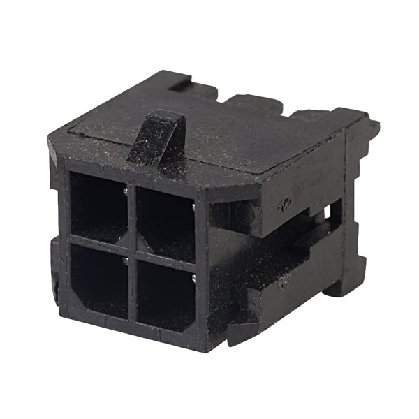 This vertical header with 4 ways is from the Micro-Fit 3.0 interconnection system which incorporates many of the features previously found on larger power connectors. These 3mm pitch connectors carry up to 5A of current. Micro-Fit products are appropriate for both power and signal uses and have been designed for high-density applications which require press-fit headers.