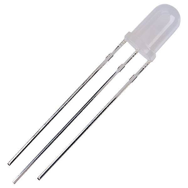5mm Tri-colour red/blue LED with high luminous output and superior weather resistance. Suitable for many applications including toys, games and audio.