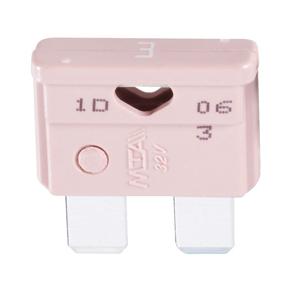 An automotive standard flat blade fuse that is one of the most commonly used in cars and trucks. This violet 3A fuse has been manufactured from transparent thermoplastic with copper plated contacts.