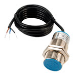 This inductive sensor has a long M30 cylindrical body that is manufactured from chrome-plated brass. The body is proof against water, oil, acid and alkaline. An LED indicator lamp is provided for status indication. This sensor is widely used in counting, measuring, RPM measuring applications in chemical, paper manufacturing, and other industries.
