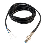 This short, cylindrical inductive sensor has a mounting distance of 1mm and a chrome-plated brass body that is proof against water, oil, acid and alkaline. Power is via DC 3-wire and there is an LED indicator lamp for status indication. Widely used in counting, measuring, RPM measuring applications in chemical, paper manufacturing, and other industries.